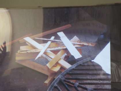 山登りや飯盒炊さんの様子の写真を見ながら説明を聞き、