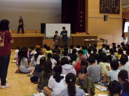 4年生は、総合的な学習の時間に、「聴覚障がい者」の方からコミュニケーションの取り方について教わりました。手話だけでなく、表情、ジェスチャーがあることなど、様々な方法を教わりました。最後は手話を使って「踊るポンポコリン」のダンス。みんな楽しく踊りました。