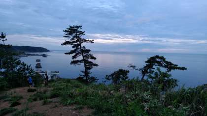 浜辺の散歩では、近くの展望台へ出かけました。残念ながら夕日はあまり見られませんでしたが、遙か彼方まで広がる海を見渡すことができました。
