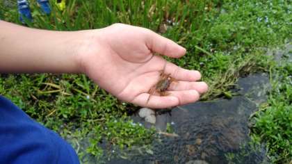 カニやトンボを夢中になって捕まえる子もいます。自然がたくさんあり、子供たちが生き生きとしています。
