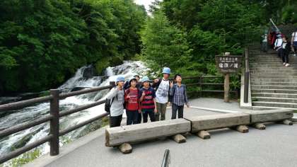 15時、ようやく龍頭の滝に到着。「先生、あとどれくらいですか?」を連発していた子供たちも、ホッと笑顔を見せていました。バスに乗り、光徳牧場へ向かいます。