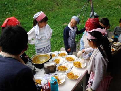 16:40、カレーが出来上がりました。自分たちで作った夕食は、一段と美味しかったようです。