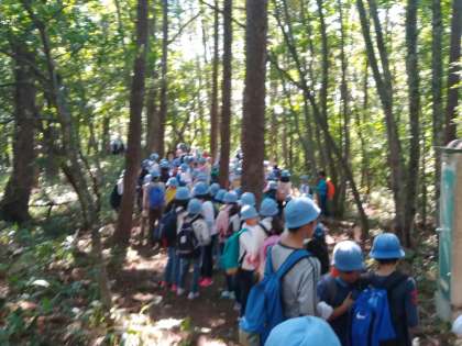 13:00に頂上を出発しました。下山コースに急な部分があり、苦労しながらも進んでいます。