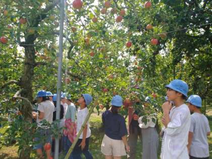 関りんご園に到着し、「つがる」と「さんさ」を試食させていただきました。その後で、自分の気に入った方のリンゴを1つもぎます。どれにしようか?、どれが美味しそうか?、と悩みながらりんご狩りを楽しみました。
