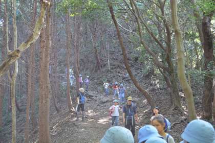 普段なかなか歩くことがない山道でも、班で声をかけながら、歩きました。