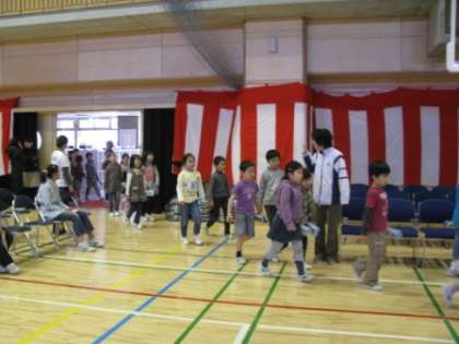 2年生は、明日の入学式で披露する演技の練習をしました。
