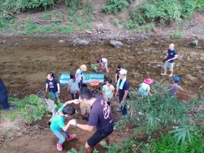 稲刈り後は、川遊び! 熱くなった体を冷やして、みんな楽しそうです。