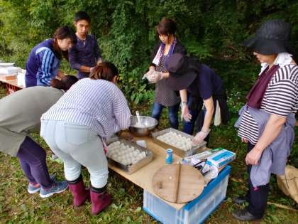 桜応援団の方々が、大子で収穫した新米でおにぎりを作ってくださっています。艶々していて美味しそう! 早く食べたいです。