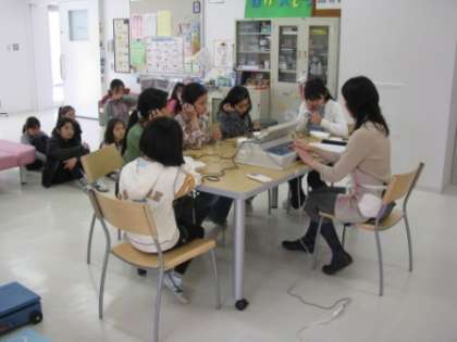 物音ひとつしない保健室で、小さな音を真剣に聞き取っています。