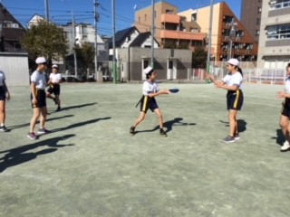 ラグビーW杯は終わりましたが、体育の授業では、タグラグビーを行います。