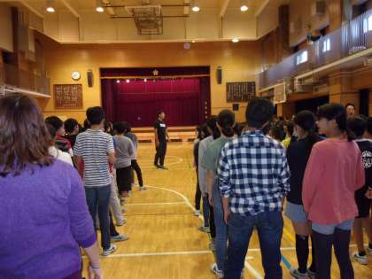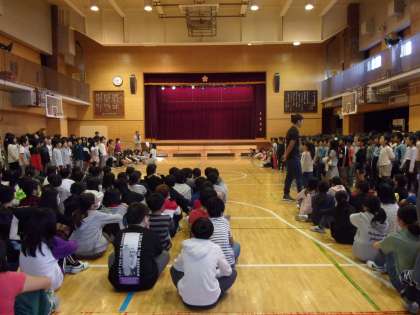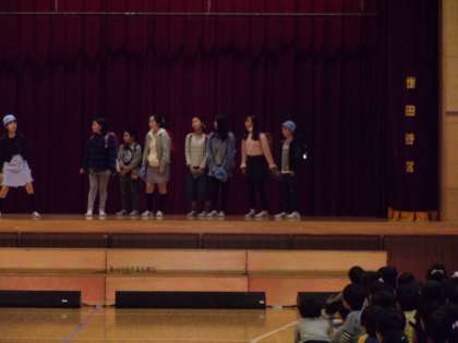 その後、「青帽大事」集会がありました。代表委員の子供たちが内容から自分たちで考え、なぜ青帽が必要なのか、劇にしてくれました。こちらも、とても上手でした。