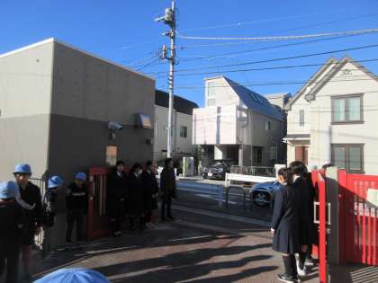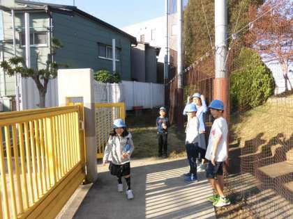 5・6年生が朝登校してくる下級生を迎えながら、あいさつを交わしました。