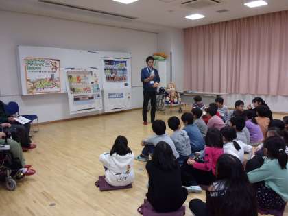 4年生は今日は区の方や、介助犬を連れた方に来ていただいて