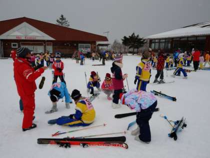 いよいよ、スキーレッスンが始まります。ゲレンデまで来ました。