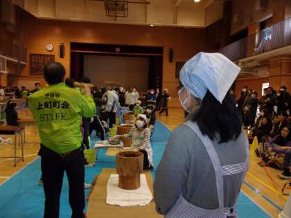 今日は、第51回の寒餅会です。町会の会長さまや、桜っ子応援団の方、おやじの会のみなさま、保護者の皆様、そして中学生ボランティアのご尽力により、無事にスムーズに寒餅会が行われました。一人5回ずつ餅をつきました。子供たちの大きな「よいしょ」という声が体育館中に響きました。つきたてのお餅の味は格別だったことでしょう。お手伝いいただいた皆様方、本当にありがとうございました。