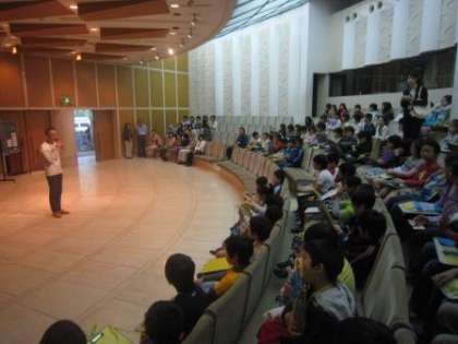 美術館では、鑑賞リーダーの方々のお話を聞きながら美術館を見てまわりました。ブロンズ像を後ろ側から眺めたり、大きな絵画を床に寝そべって鑑賞したりするするなど、普段はなかなかできない貴重な体験を子ども達はできたのではないかと思います。