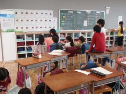 本に関係するクイズを出してもらったり、何度も何度も同じお話を読んでもらったり。6年生のお兄さん・お姉さんが楽しませてくださいました。