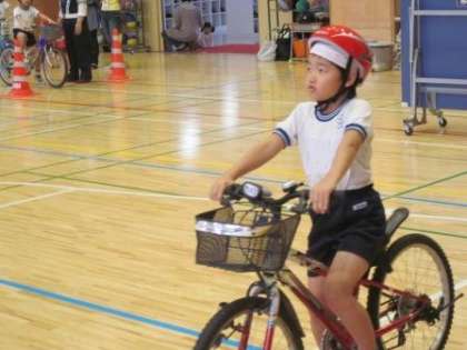 さらに体育館では、警察の方の話を聞いたり、クイズに答えたり、実際に自転車に乗って模擬コースを走ったりしました。