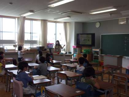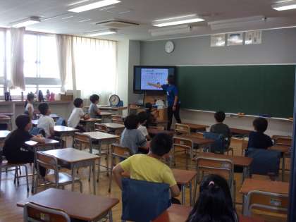 どのクラスもパワーポイントを使って感染症対策の授業をしています。みんな真剣です。