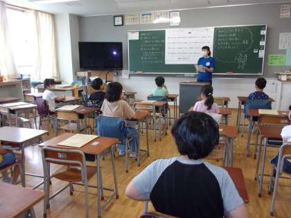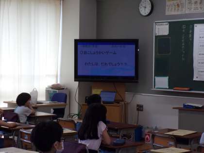 3年生も「自己紹介クイズ」や「先生クイズ」をしています。当てるたびに「わー!」と、盛り上がっています。さすが中学年。元気いっぱいです。