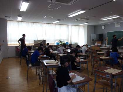 5年生は「成長ノート」を書いています。自分の自己紹介や、今年度の目標など、真剣に、黙々と鉛筆を走らせています。