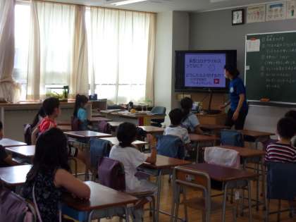 午後の部のスタートです。3年生もとても背が伸びたように感じます。3か月の間に、すっかり大人っぽくなりました。コロナウイルスについての学習をしています。