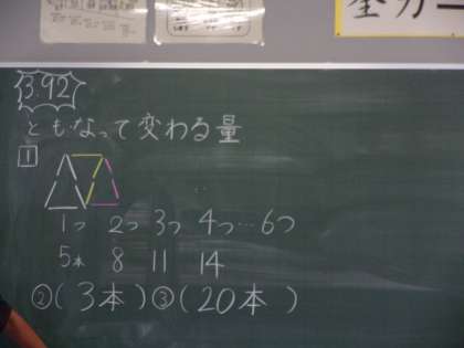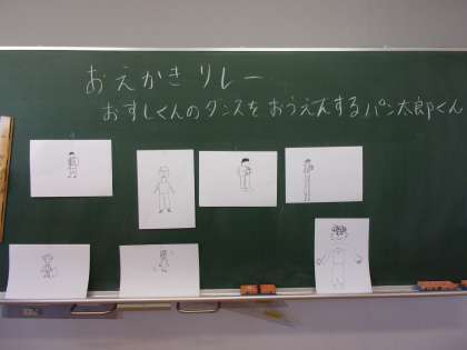2時間目には、5年生は復習をしていました。テスト前に解説。「あー、そうか。」「そういうことだったんだ。」という声も。一人だと難しかったのでしょう。また、3時間目はグループで「お絵かきリレー」をしました。お題を20秒ずつ描いて次の人に渡すというもの。協力しながら楽しそうに取り組んでいました。