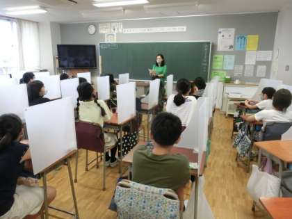 皆さん、おはようございます。今日から、ようやく全校そろっての登校が始まりました。2年生以上は給食も始まるので、楽しみですね。全校朝会は、しばらくテレビ放送で行いますので、教室で静かに見てください。