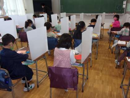 久しぶりの休み時間です。今日は雨なので校庭では遊べません。体育館に入るときはうきうきした様子でした。「すごい久しぶり〜。」と嬉しそう。教室の子たちは、自分の机で静かに楽しく過ごしました。