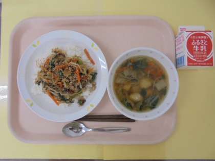 ビビンパ 牛乳 肉団子入り春雨スープ