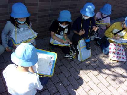 雨で延期になっていた、町めぐりに行ってきました。小グループに分かれて、自分たちの住む町の素敵な場所を見つけました。知っている場所から知らない場所まで、たくさんの驚きがあったようです。度重なる延期にも関わらず、たくさんの保護者の方にご協力いただき、ありがとうございました。