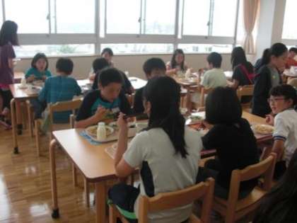 いつもの教室の給食とは雰囲気が違いますが、準備も早く、食事中の会話も弾みました。