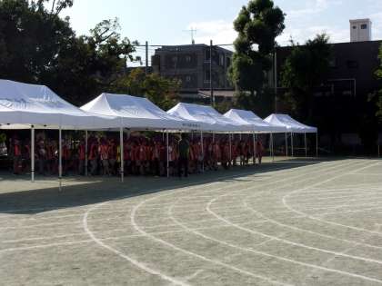 今年度はテントをびっしり立てました。6年生の様子です。明日が楽しみです。