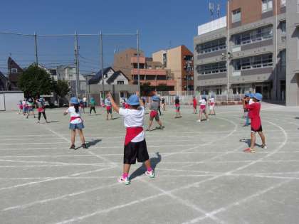 元気いっぱいの3年生。笑顔いっぱいに踊っています。