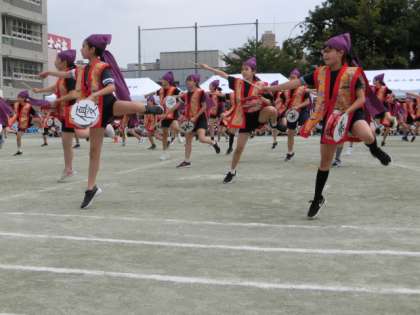 3年生は、とてもエネルギッシュなダンスでした。大きなかけ声が桜小いっぱいに響いていました。黒いTシャツにスカーフが映えて、とてもきれいでした。