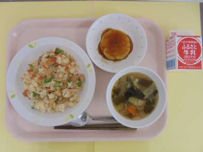 子ぎつねごはん 牛乳 大根のみそ汁 いももち