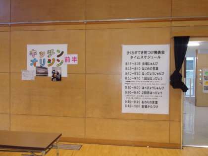 2年生は生活科の授業で「さくらすてき見つけ発表会」をしました。桜小学校の周辺の施設やお店にスポットを当て、その場所の「すてき」なところを見つける学習です。56人ものボランティアの保護者の皆様と町探検をし、いよいよ今日はその学習の発表会です。お店の方や保護者の皆様にお客様になっていただき、生き生きと発表することができました。