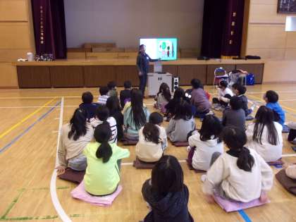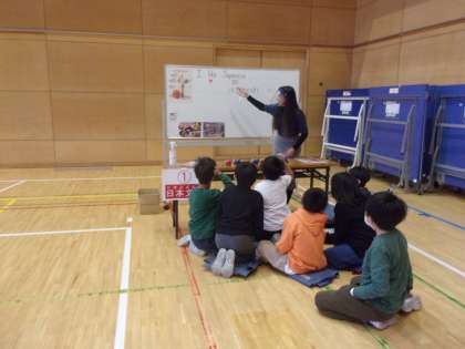 今日は4年生が「異文化体験」をしました。教育センターの中にある「TOUCH THE WORLD」から英語の講師の先生方にいらしていただきました。英語のカルタに取り組んだり、読み聞かせを聞いたりと楽しみました。
