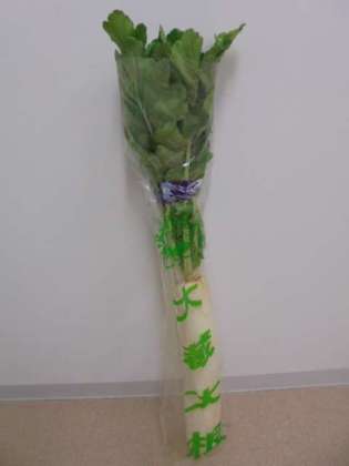 ☆今日のみそ汁には、せたがやそだちの「大蔵大根」を入れました。根の上から下まで同じ太さであり、全長が長いのが特徴です。子どもたちに見せると、その大きさに驚いていました。自分たちの住んでいる世田谷区にも「大蔵大根」という貴重な地場野菜があることを知るきっかけになれたらよいと思います。