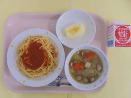スパゲッティポモドーロ 牛乳 ポトフ りんご