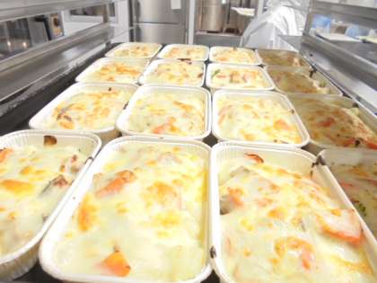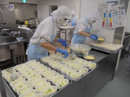 ☆今日は「ポテトグラタン」が出ました。じゃがいもは粉ふきいもにすることで、食べやすいように工夫しました。すべて手作りであるため給食室は大忙しでしたが、子どもたちに大好評でした。