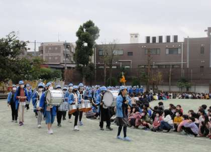 見学していた5年生は、メッセージカードに「私も、来年はこれをやるんだな、って思いながら見ていました。」「今年はボロ市がないのに、がんばって練習したことがすごく伝わってきました。」「今までの6年生たちの努力を引き継いで行けるように、私もがんばろうと思いました。」と書いていました。
