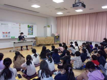 4年生は、視覚障がいの方に来ていただき、日常の生活や普段の喜び、また生活の難しさなどについて教えていただきました。目が見えない中で「麻婆豆腐」を作る夕飯、洗濯はジェルボールが簡単にできる等、生きたお話を伺うことができ、興味津々でした。4年生も反応がよかったと、喜んでいただきました。