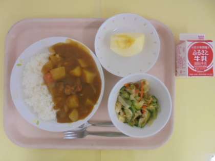チキンカレーライス 牛乳 野菜の中華風味 りんご