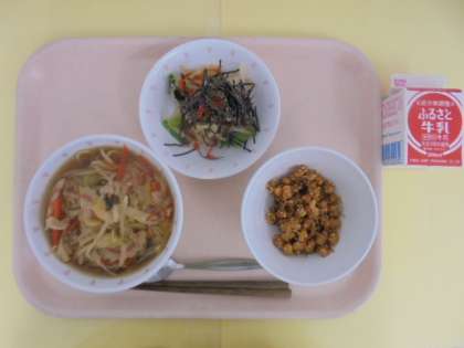 サンマーメン 牛乳 大豆とじゃこの甘辛あげ 野菜ののり和え