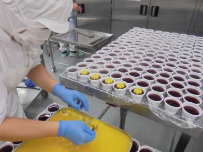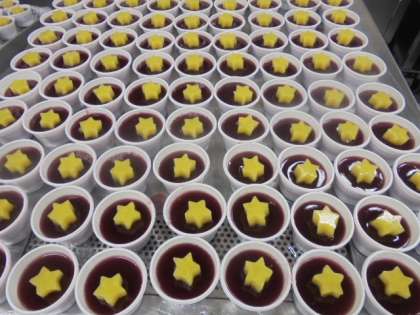 ☆今日は2学期最後の給食だったので、子どもたちが好きなメニューにしました。子どもたちに喜んでもらえるように、ぶどうゼリーの上に星形のゼリーをのせました。どのクラスもおかわりじゃんけんが行われていました。