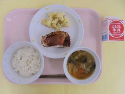 ☆今日は「赤魚の煮付け」が出ました。こんぶだしを使った煮汁を作り、じっくりと煮ました。白いご飯と合うおかずであり、白いごはんもたくさん食べてくれました。