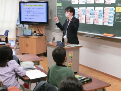 3月28日(木)、5校時に3年生理科の「じしゃくをしらべよう」で研究授業が行われました。グループごとにクリップや画鋲、お金、空き缶などについて磁石に付くかを調べ、付く物はピンク、付かない物は水色にして結果を表し、わかったことをまとめていました。磁石に付く物が鉄であることを知り、最後に鉄探し実験をして確かめました。磁石に砂鉄が付く様子やお金は付かない様子に驚いたりしながら、意欲的に授業に取り組みました。