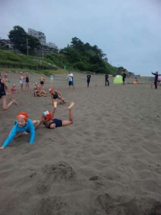 遠泳の練習に行っている間