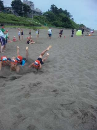 男女別にビーチフラッグを